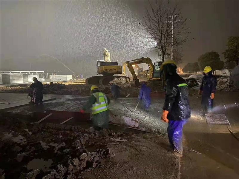 截止1月29日18:00,現(xiàn)場已完成準(zhǔn)備區(qū)所有混凝土澆筑,雨污水管道、室外水電管道施工完成,地坪及道路基本結(jié)束。自1月28日暴雪來襲,施工環(huán)境惡劣,一線人員不畏嚴寒,連夜雪中奮戰(zhàn),集團公司黨員突擊隊、志愿服務(wù)隊出動搬運物資、修補設(shè)施等,以飽滿熱情和堅決態(tài)度克服各種困難和障礙,充分展現(xiàn)了“國企加速度”。