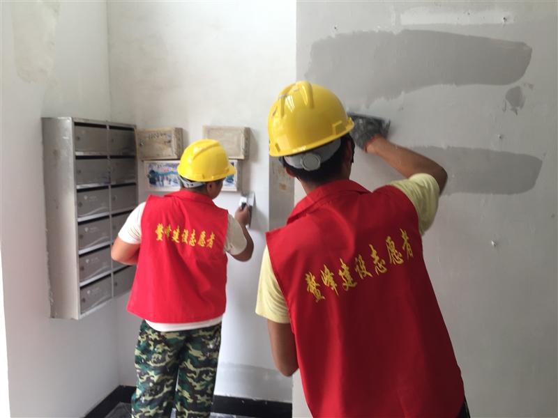 8月26日-8月30日,志愿服務(wù)隊(duì)來(lái)到鉆石鑫城小區(qū)開(kāi)展小區(qū)清潔志愿服務(wù)活動(dòng)。隊(duì)員們對(duì)小區(qū)單元樓道墻面上、信箱上的涂鴉“牛皮癬”廣告進(jìn)行清理,給墻面重新刮膩?zhàn)印⑺⑼苛,為居民營(yíng)造良好的生活環(huán)境。
